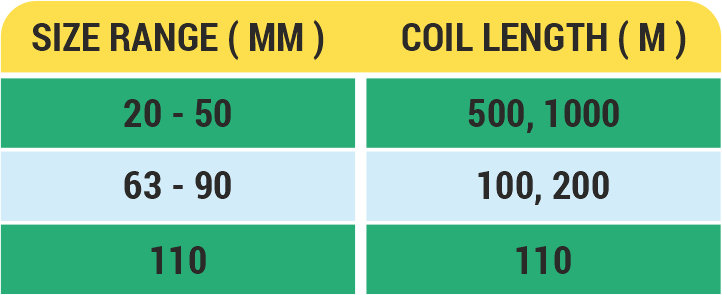 The pipes are available in complete range from 16mm to 110mm sizes.